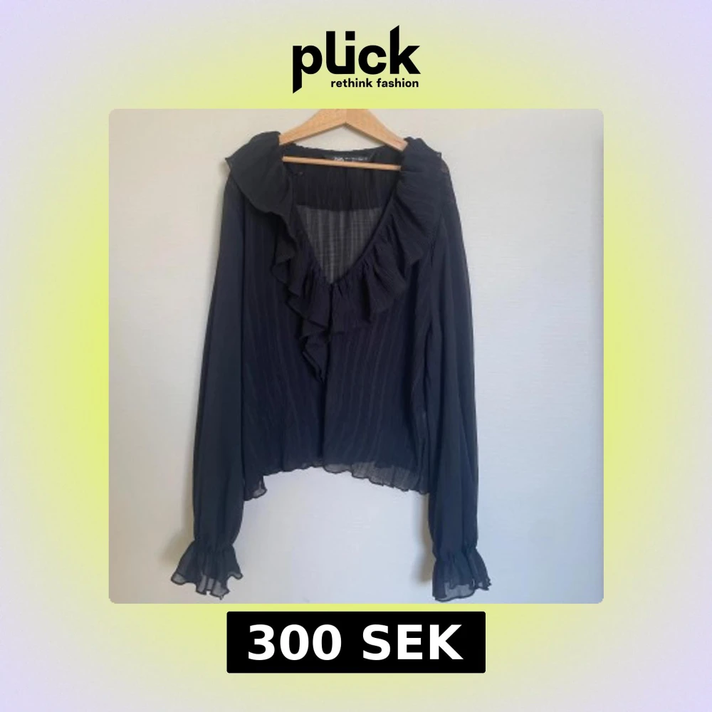 Supersnygg svart blus från Zara med volanger. Plagget är näst in till aldrig använt😊 Alla mina plagg tvättas och stryks innan jag skickar iväg de😘