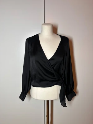 V ringad omlott blus med knyte i satin från Zara. Storlek xs-s. Köp sker via köp nu, jag postar inom 24h. Kvar tills markerad såld