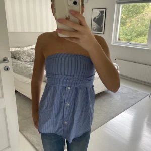 Randig bandoutopp i skjortmaterial och knappdetaljer från Zara i storlek XS.