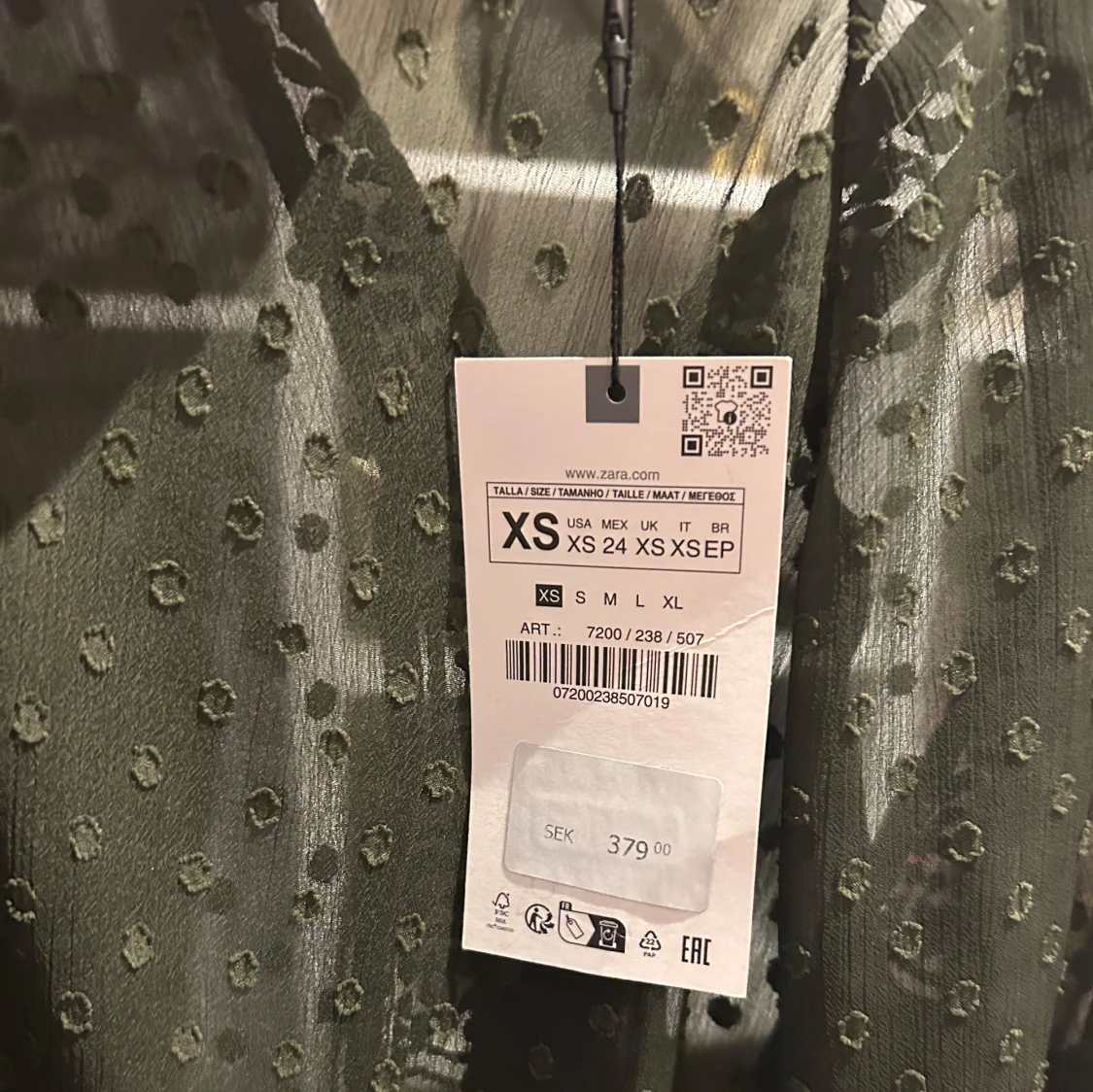 Jätte fin mörkgrön blus från Zara i strl XS, helt ny med prislapp. Säljer den på g av att den inte kom till användning på julafton