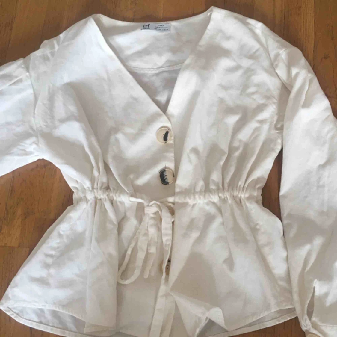 Fin blus i mocka material. Sparsamt använd. Den är i xs men är väldigt stor för att den ska sitta baggy så den passar s-m.