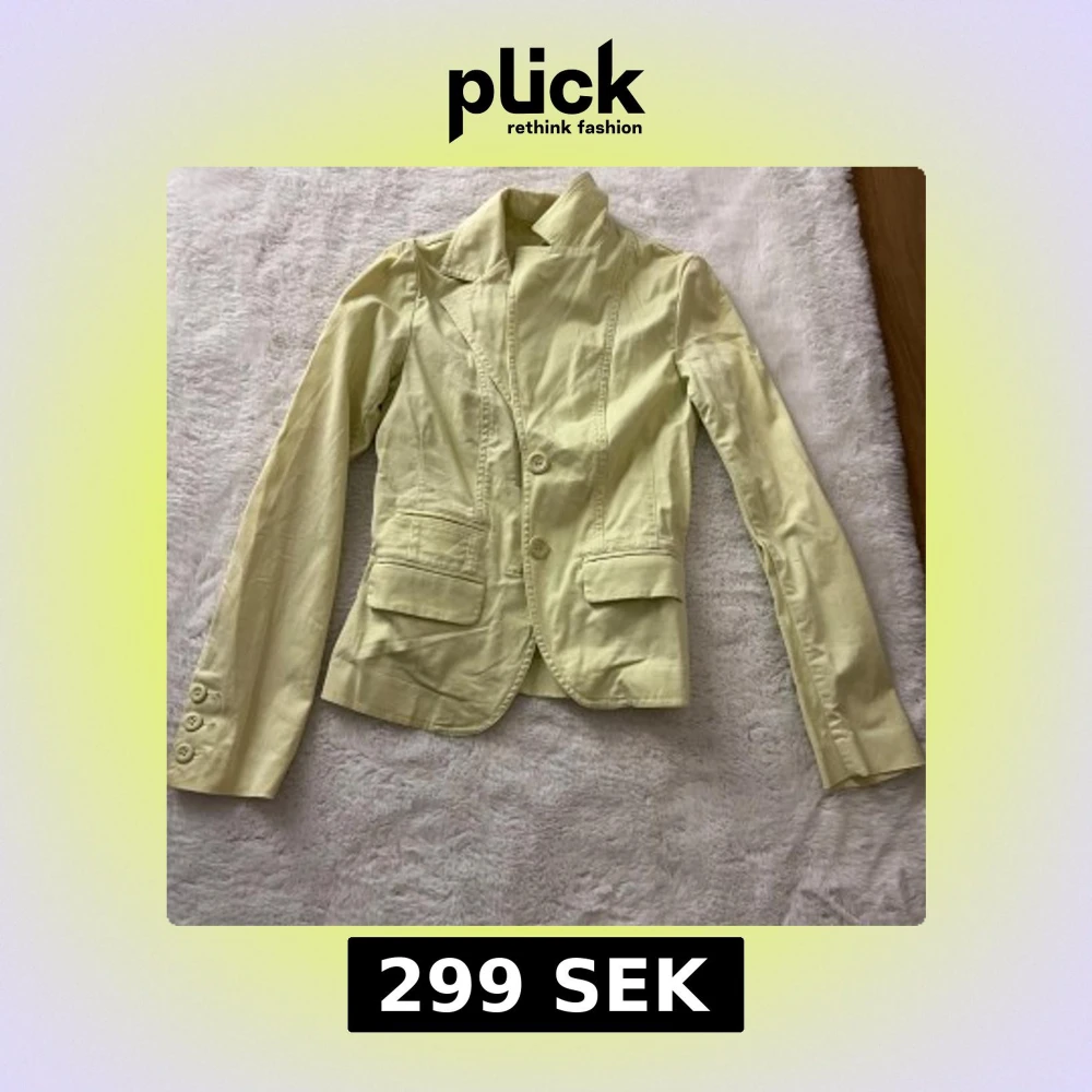 Säljer en ljusgul kostym med figursydd kavaj och matchande utsvängda low waist byxor. Kavajen har två knappar, ficklock och klassisk krage. Byxorna har hög midja och vida ben. Perfekt för dig som vill sticka ut med färg! Materialet känns som bomull. Kavajen säljs separat för 299kr och båda tilsammans för 500kr
