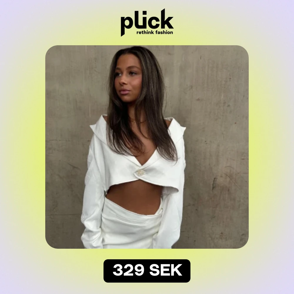 Vit croppad kavaj i storlek S/36. Köp via Instagram @avint.uf 🩷