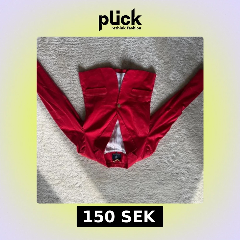 Snygg röd kavaj från Stockh LM med klassisk passform och guldknapp framtill. Kavajen har två fickor med lock, helfodrad insida i vitt och dekorativa knappar vid ärmsluten. Perfekt för dig som vill sticka ut med färg.