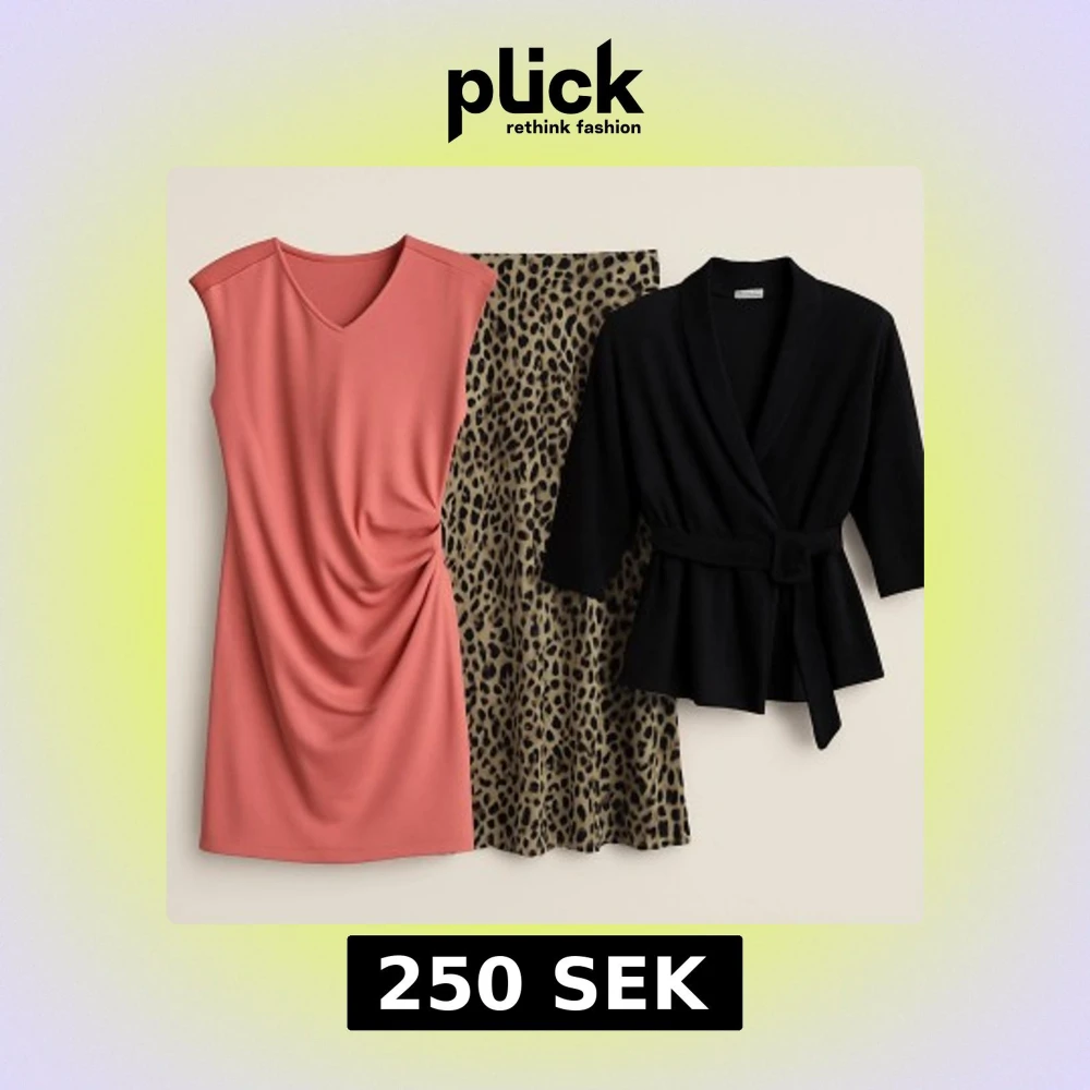Snyggt och stilrent 3-delars paket i klassiska och feminina toner â perfekt för bĂ„de vardag, kontor och kvĂ€ll. đ KlĂ€nning frĂ„n Kaffe, storlek M. Smickrande drapering över höften, vacker dĂ€mpad rosaton. Lite nopprig men fortfarande mycket fin att bĂ€ra. đ€ Svart blazer, storlek 38. Elegant sammet med markerad midja och avtagbara axelvaddar. Ger en lyxig siluett! đ Kjol frĂ„n Weekday, storlek 38. A-linjeformad modell i mjukt tyg, med snyggt fall och leopardmönster. ResĂ„r och dragkedja bak.