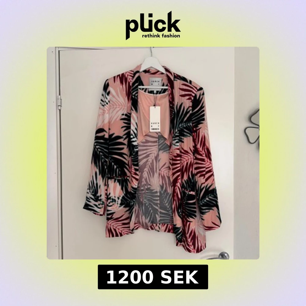 Ny med prislappen kvar.. Lite mjukare mer böljande material än vanligt kavajtyg. Inga knappar utan bara slag. Snygg till både vardag och fest. Nypris 1599 kr.