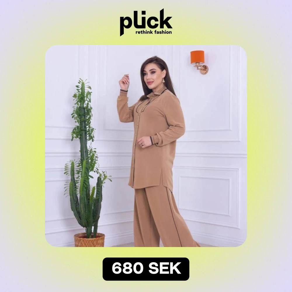 Säljer ett snyggt beige set från Inspire. Setet består av en långärmad skjorta med knappar och matchande byxor med elastisk midja. Perfekt för en stilren och bekväm look. Passar både till vardags och fest!
