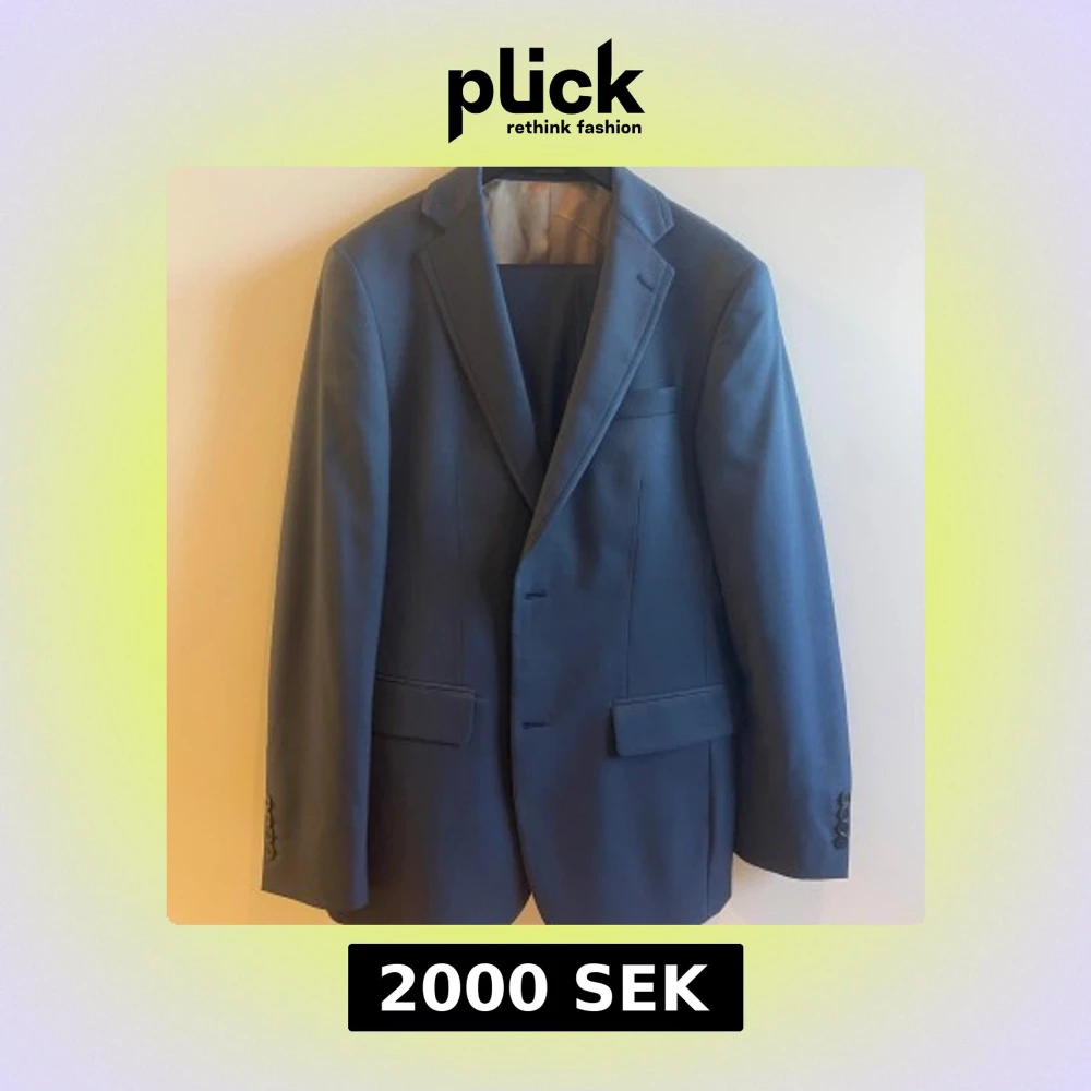 Säljer en stilren mörkblå kostym från Cavaliere. Kavajen har klassisk passform, två knappar framtill, fickor med lock och knappar vid ärmslut + byxor! Perfekt för formella tillfällen, student, bröllop mm.