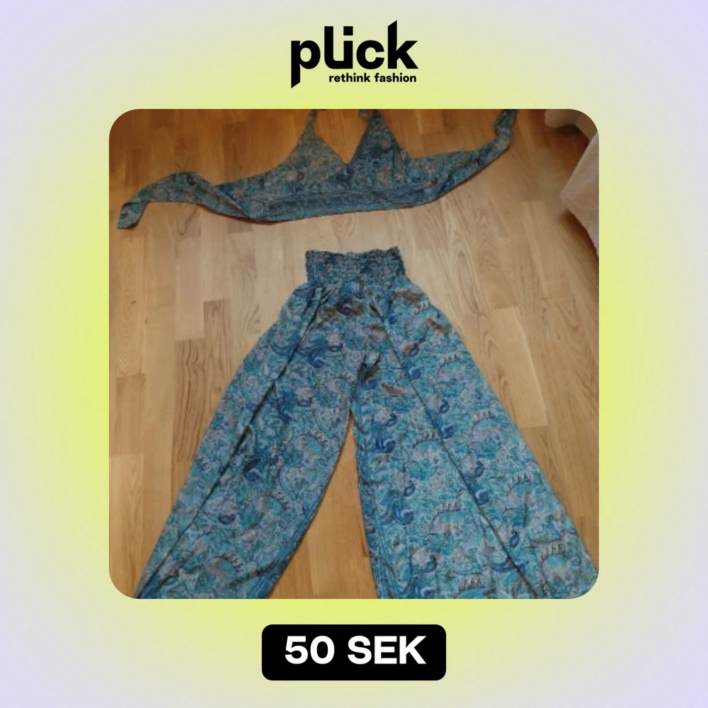 Tunnt satin set från marocko användt 1 gång. Bra stretch i byxorna. One size S-L skulle jag upskatta. Möts gärna upp i göteborg.