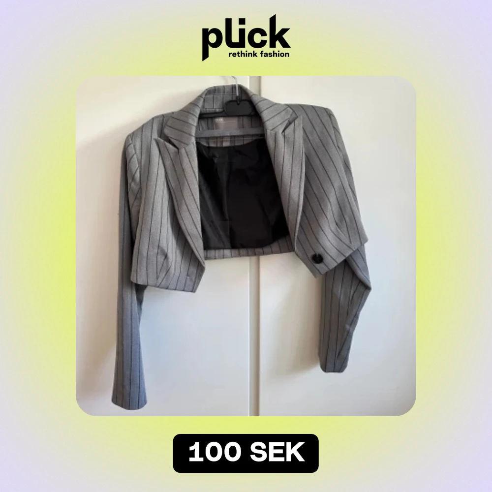 Croppad grå kavaj med svarta ränder ifrån asos. Typ aldrig använd så skicket är superbra!💚 Köparen betalar för frakt🚛💕