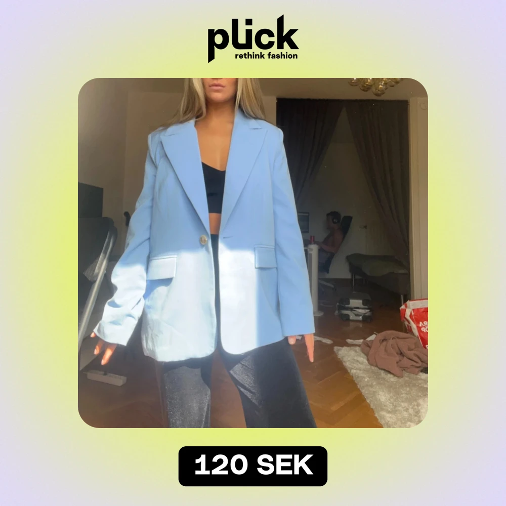 Jättefin ljusblå blazer storlek 34 (lite stor i storlek) men har bara kommit till användning Max 2-3 gånger då jag tycker att den är lite för stor för mig. Jättebra skick. Köpte för 639kr.
