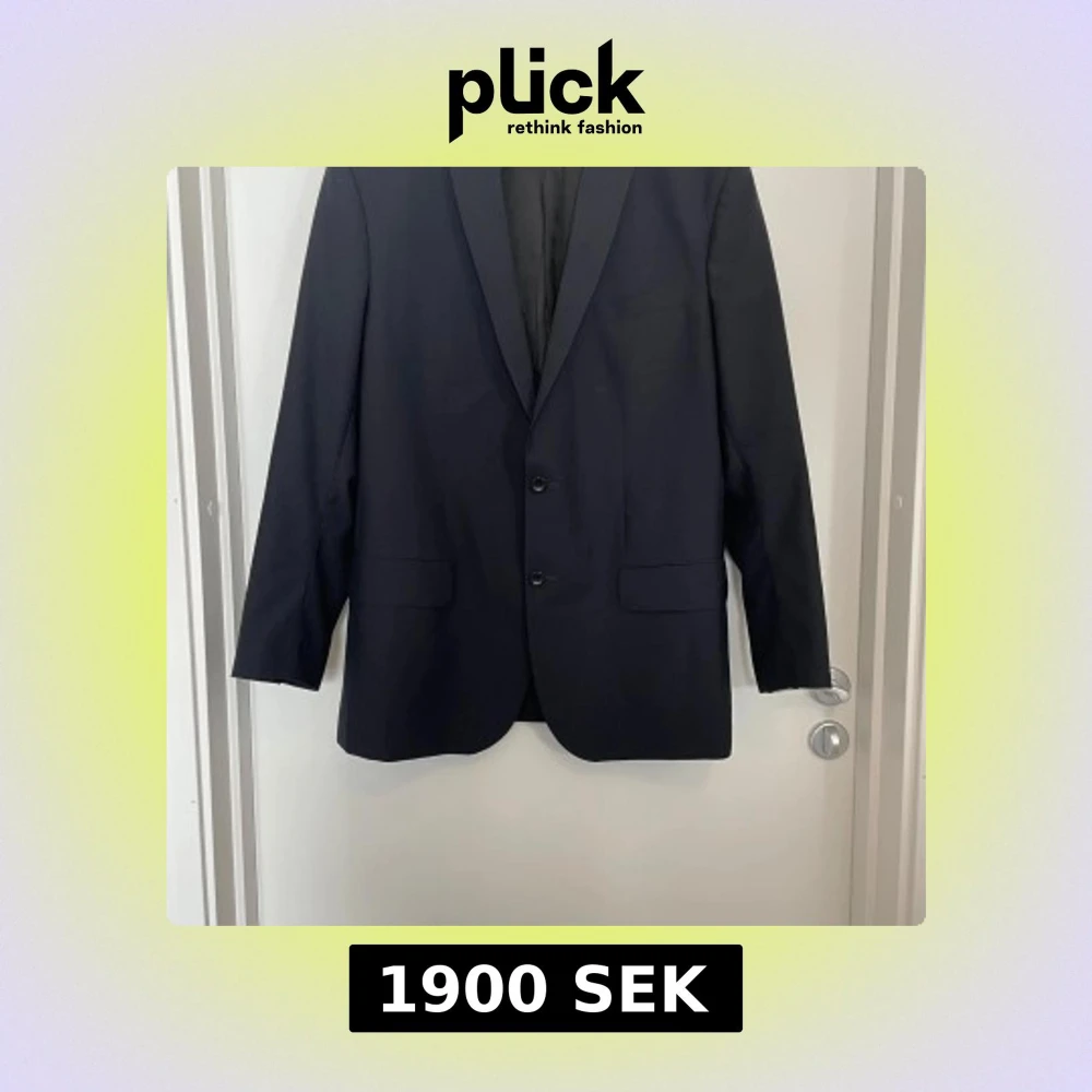 Stilren svart kavaj från Filippa K i klassisk modell med två knappar framtill och fyra dekorativa knappar vid ärmslutet. Kavajen har två fickor med lock och en bröstficka. Materialet är slätt och känns lyxigt, perfekt för en snygg look.