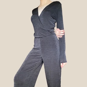 En mysig svart jumpsuit/byxdress från NLY Trend i storlek M, mjukt material under så den är inte see-through. Jag har storlek S och den är lite lös på mig. Passar jättebra till fester.