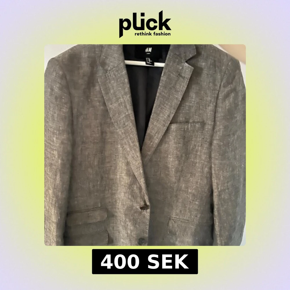Snygg grå kavaj från H&M i herrstorlek L. Perfekt för både formella och avslappnade tillfällen. Kavajen har en klassisk design med två knappar framtill och fickor. Tillverkad i ett linne material