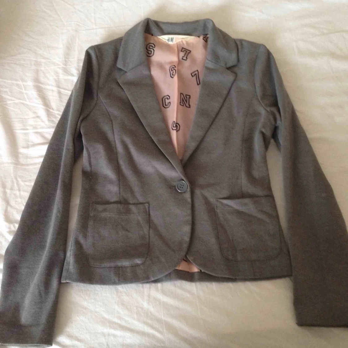 Superskön kavaj för någon som är lite mindre. Knäpps med en knapp fram. Två fickor och ett bekvämt innertyg av "siden". Väldigt stilren och bekväm. Knappt använd, som ny.