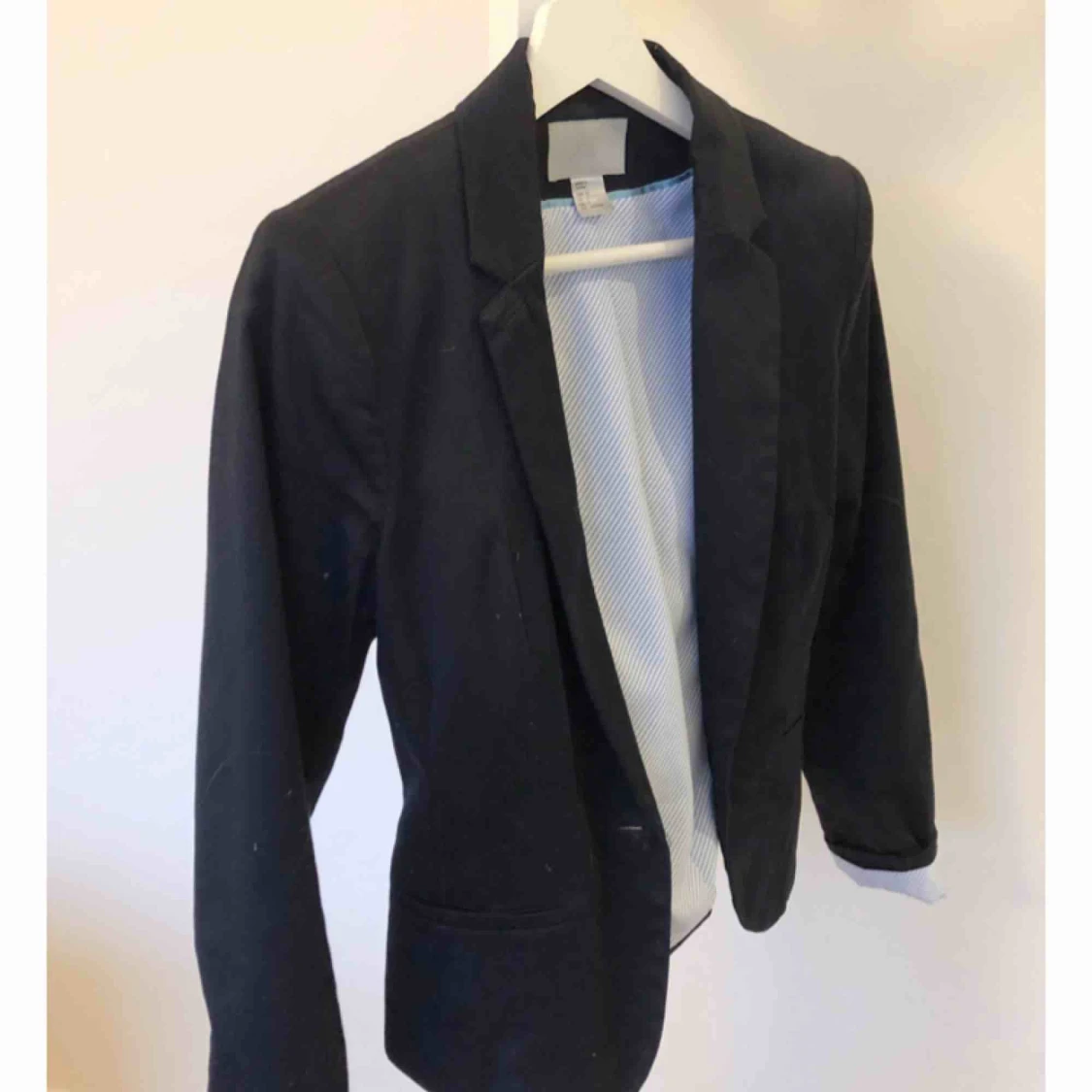Säljer denna fina knappt använda kavaj ifrån h&m i storlek 36. Den är mörkblå och kostade ca 500. Säljer pga att den är för liten. Kan mötas upp, frakt tillkommer i priset.