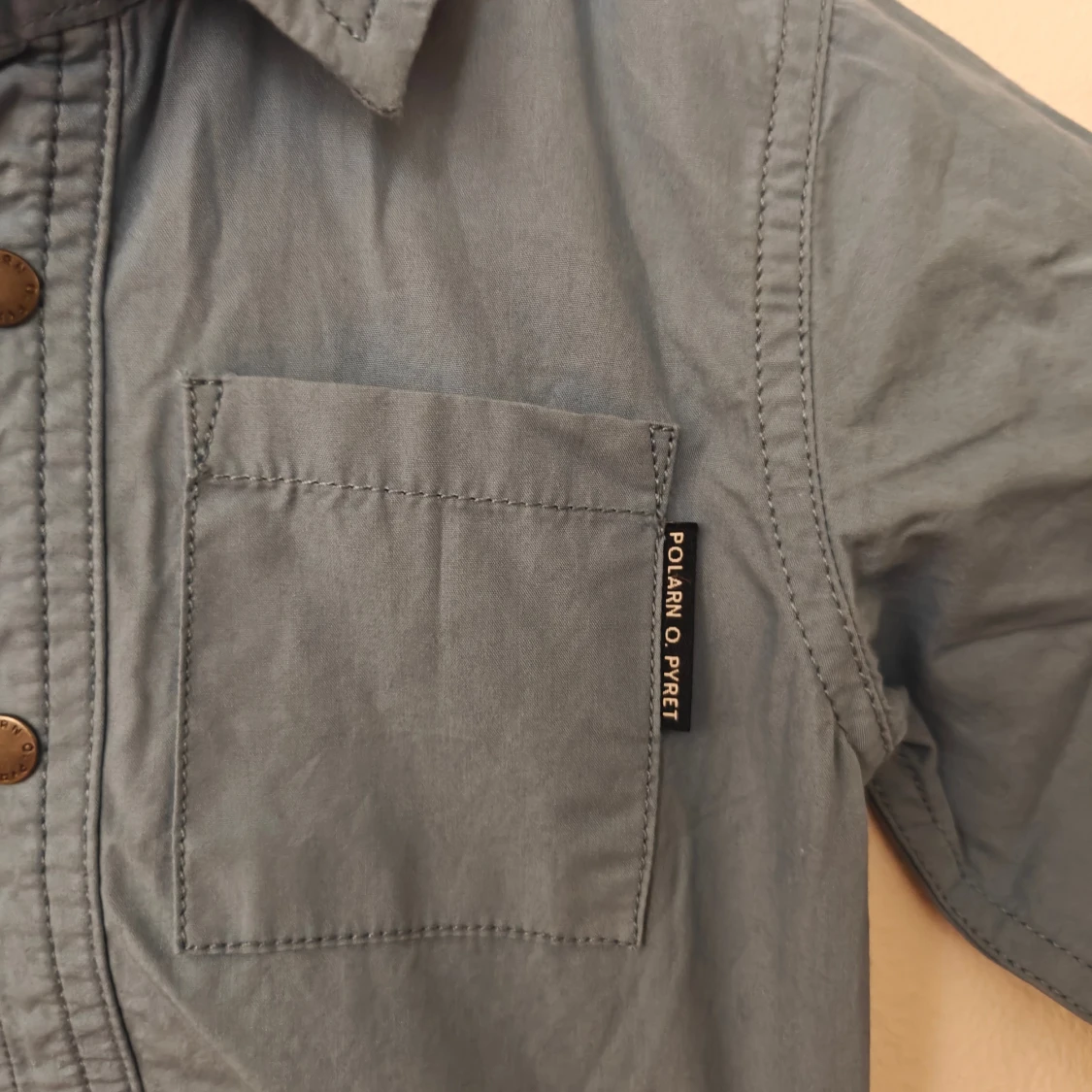 Snygg blå jumpsuit från Polarn O. Pyret i ekologisk bomull. Modellen har långa ärmar, knappar framtill, bröstficka och knytskärp i midjan. Perfekt för en cool och avslappnad look. Fickor på sidorna och uppvikta benslut ger extra stilpoäng.