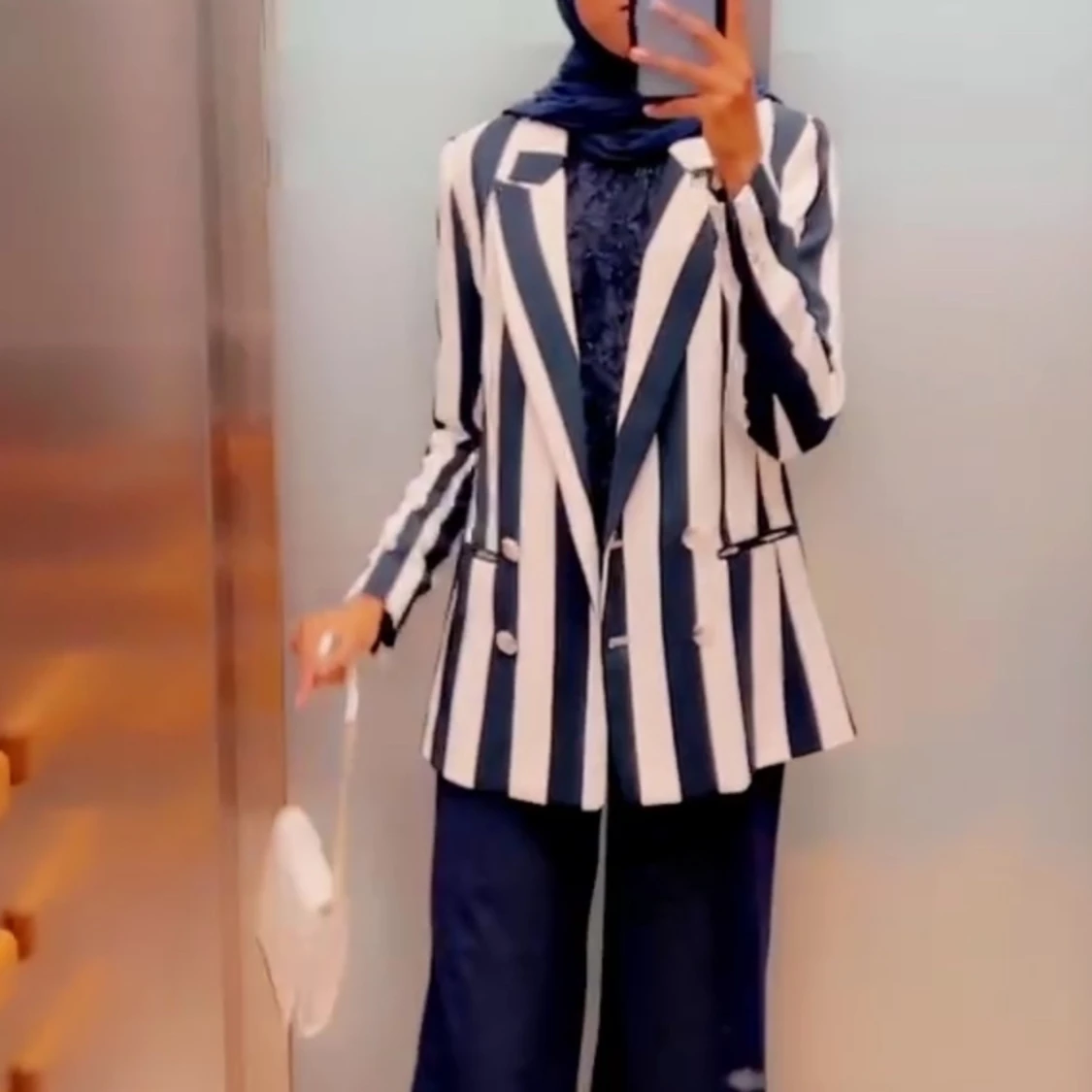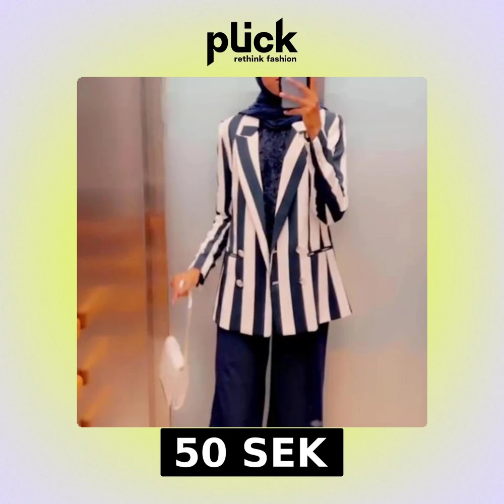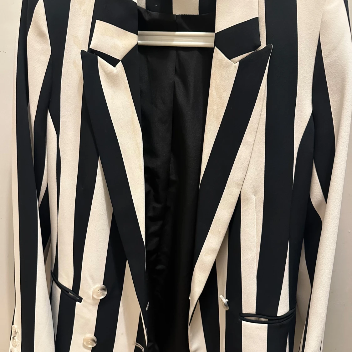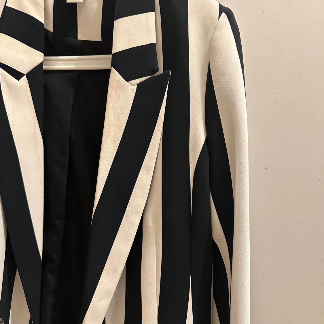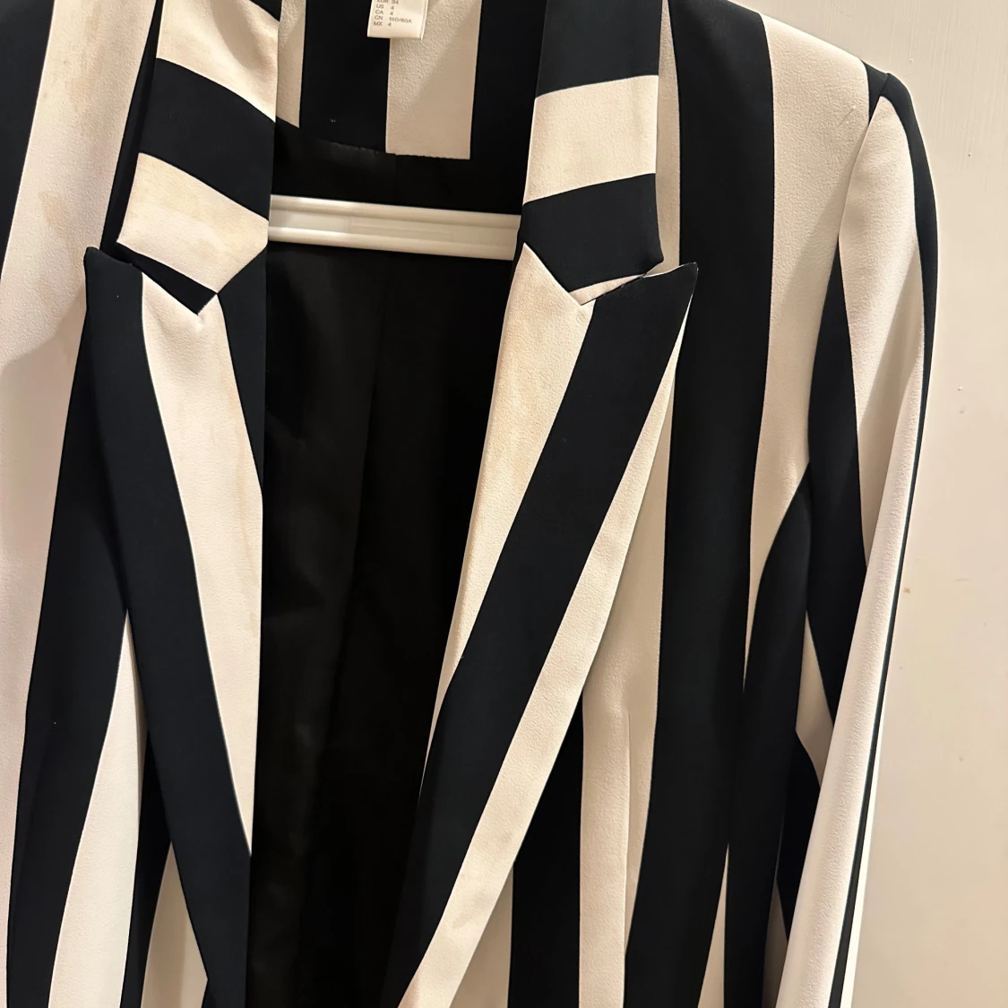 Snygg kavaj från H&M med breda svarta och vita ränder. Kavajen har markerade axlar, dubbla knappar framtill och klassisk krage. Perfekt för dig som vill sticka ut med en cool och trendig look.