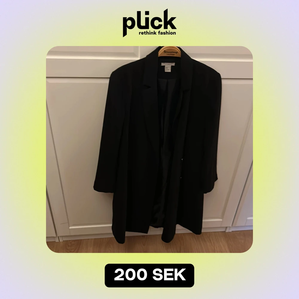 Säljer en stilren svart kavaj från H&M i storlek 40. Går en bit ner på låret. Gömd knäppning. Perfekt för både vardag och fest. Kavajen har en klassisk design med långa ärmar och en elegant passform. Den är i mycket bra skick och redo för nya äventyr. Passar perfekt till höst- och vårgarderoben!