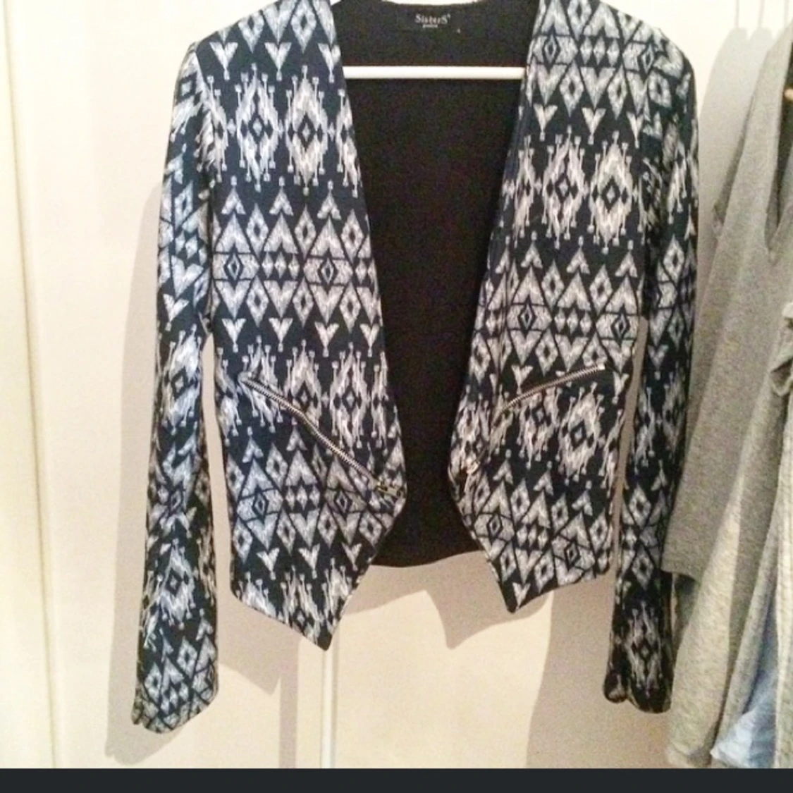 Mönstrad jacka/kavaj som bara använts fåtal gånger. Tunn och stretchig. Köparen står för frakten.