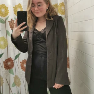 Snygg kavaj formad efter kroppen. Stl 34 från H&M. Lite svårplacerad färg.. i vissa ljus är den brun och i andra grå. Lite skrynklig då den legat i en påse 🙈