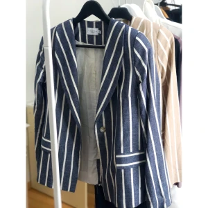 Blå, randig kavaj. Använd fåtal gånger. Jättefin till vit T-shirt och jeans för mer ”uppklädd” outfit
