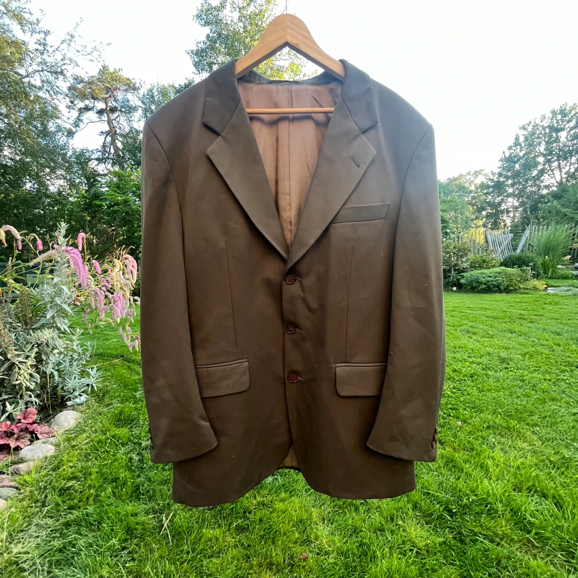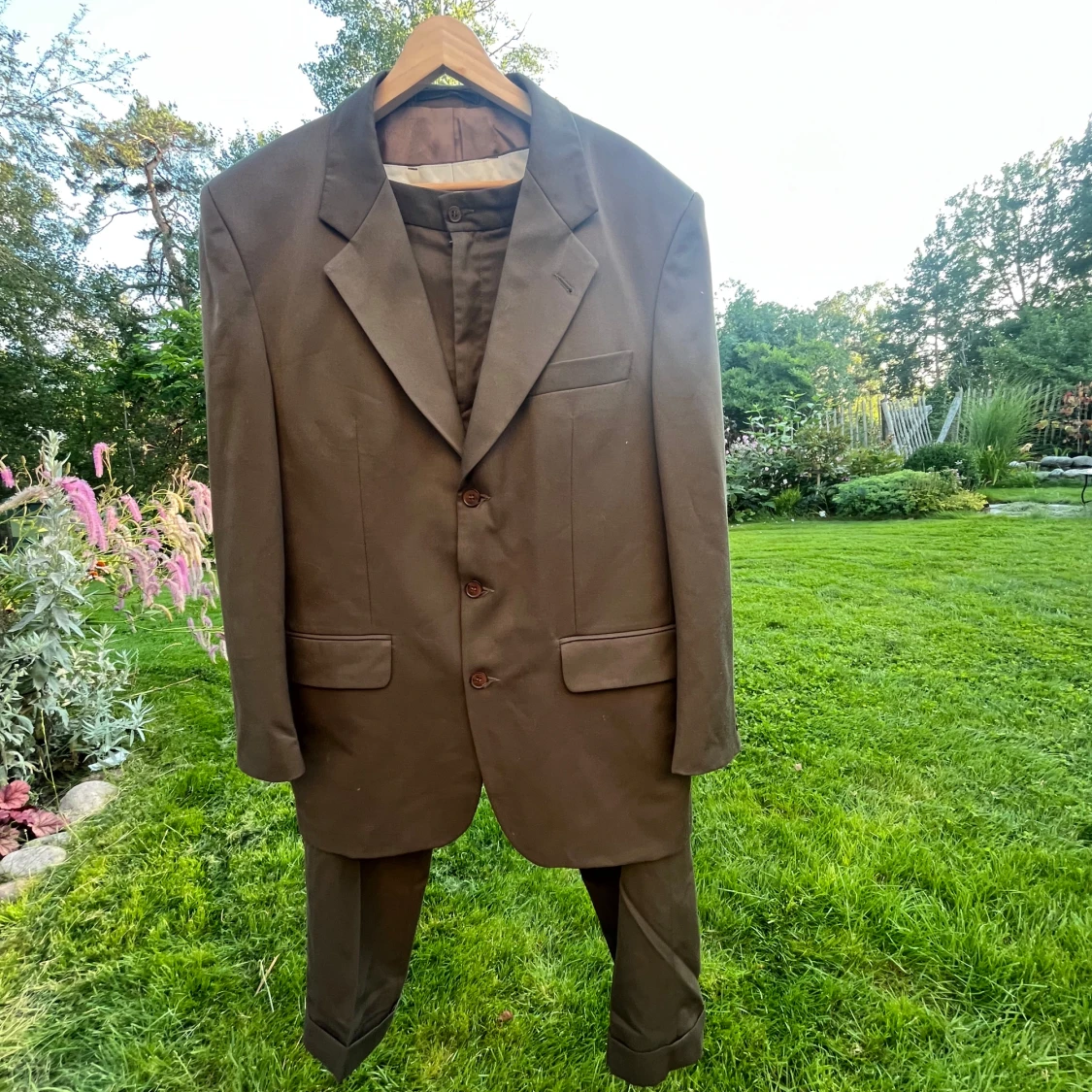 Olivgrön kavaj o byxor,storlek 50 på kavajen och 48 på byxorna. Bra skick💕priset gäller för båda