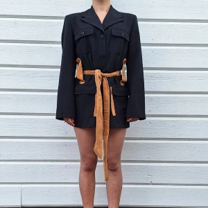 Svart kavaj i stretchigt material med orange aktiga manchester detaljer