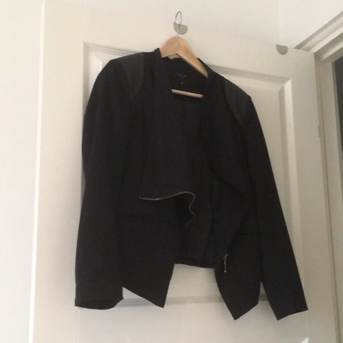 Snygg kavaj i svart fintyg, skinndetaljer och kedja. Stretch