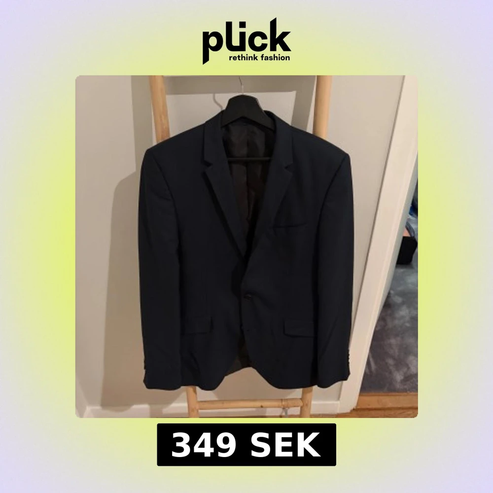 Snygg mörkblå kostym med klassisk kavaj och matchande kostymbyxor. Kavajen har två knappar, fickor med lock och smal krage. Byxorna har pressveck, bälteshällor och bakfickor med knapp. Perfekt för dig som vill ha en stilren och tidlös look.