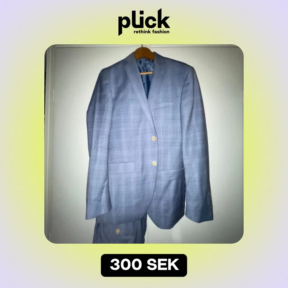 Använd 1 gång, en fin blå rutig kostym nästan som ny. Pris kan diskuteras.