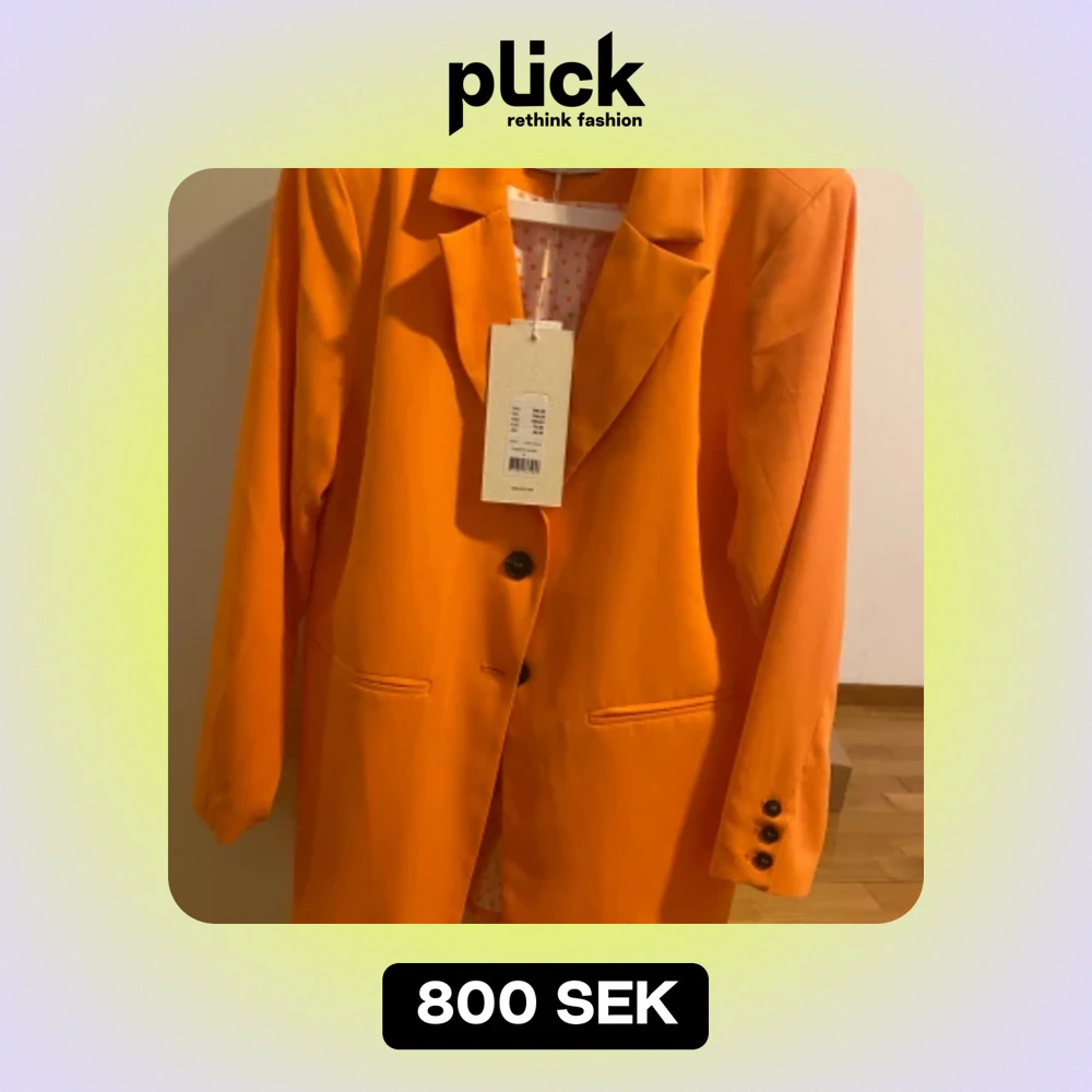 Köpt men aldrig använd orange kavaj,den är rätt så tun och sitter jätte fint på