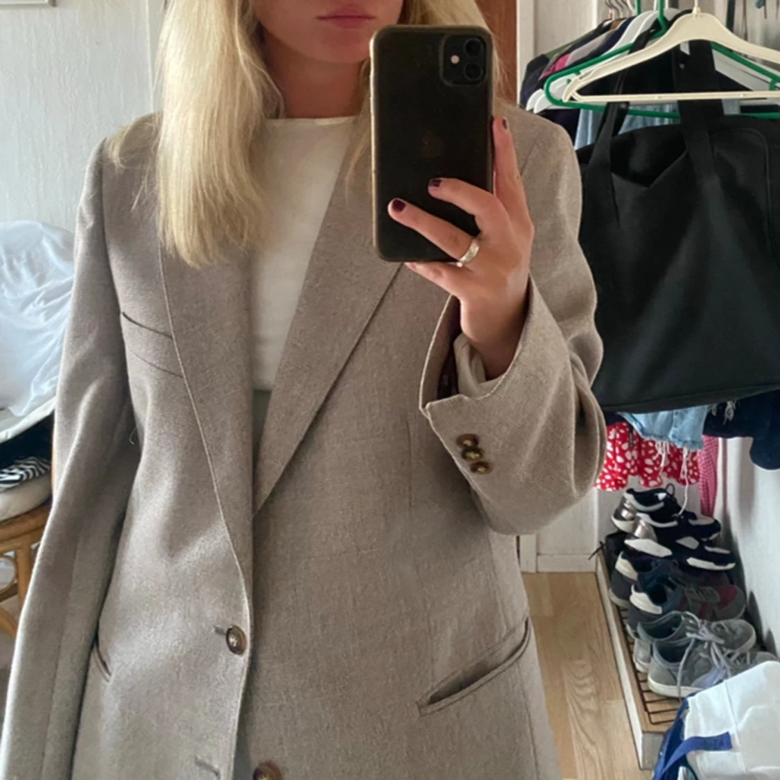 Ursprungligen är detta en herrkavaj men använder som en oversized kavaj, älskar färgen på den som är lite brunbeige melerad ish men använder inte jättemycket tyvärr