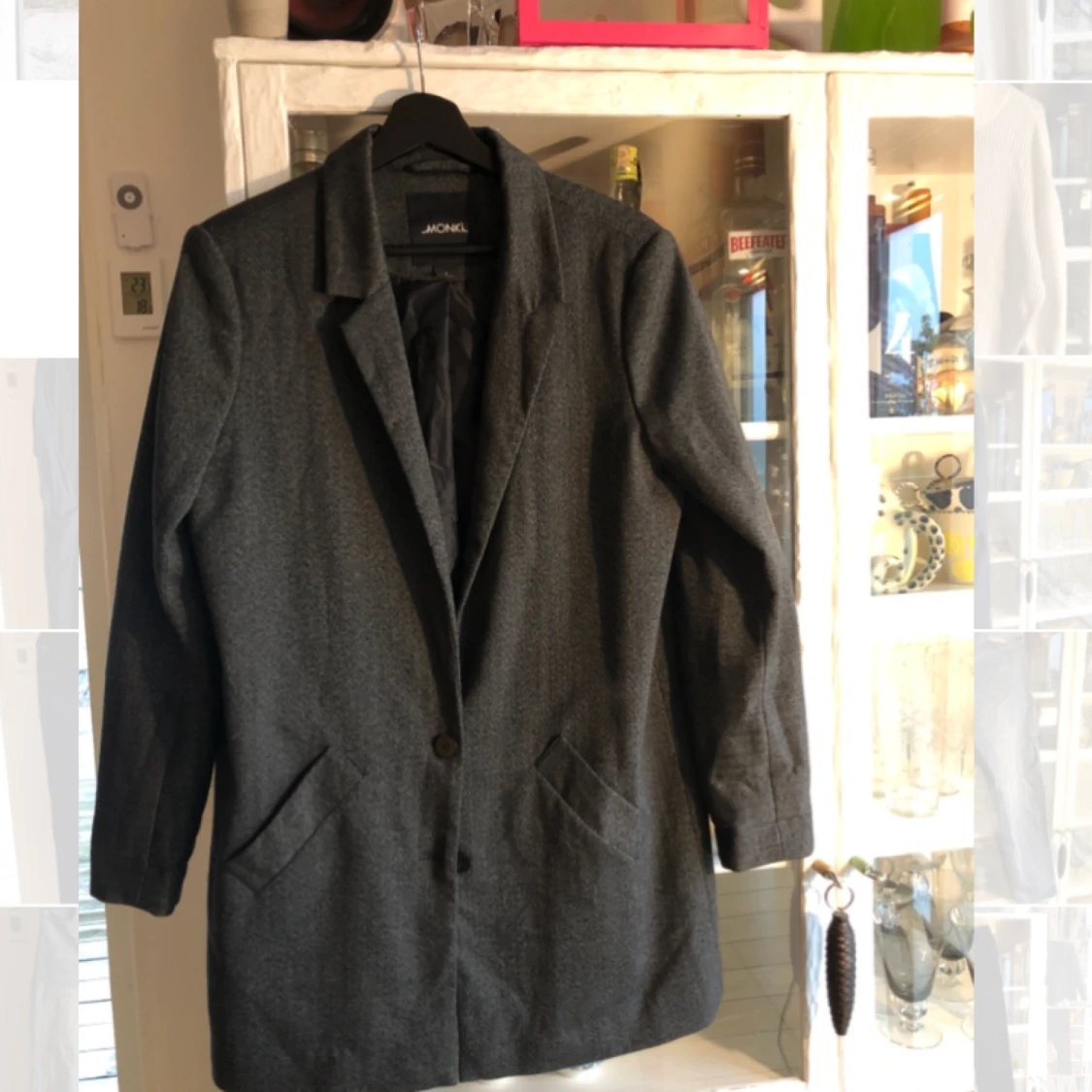 Kavaj med tweedfeeling men utan sticks, oversizehållet, passar även medium. Finns byxor i samma tyg, i mina annonser. Har katt, fraktar även mot kostnad.
