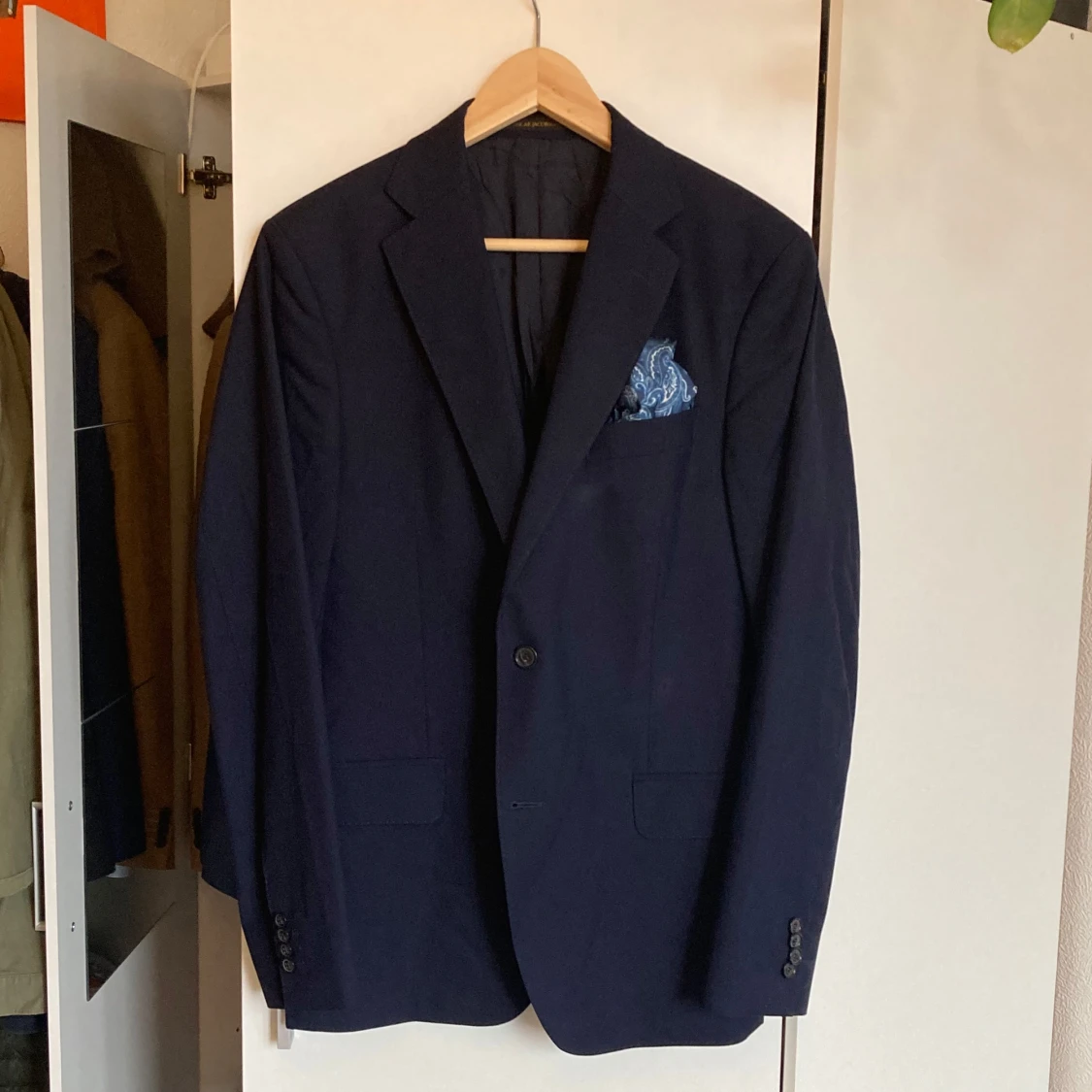 Snygg mörkblå kavaj ifrån Oscar Jacobsen, kanske i behov av en tvätt (se bild 2)
