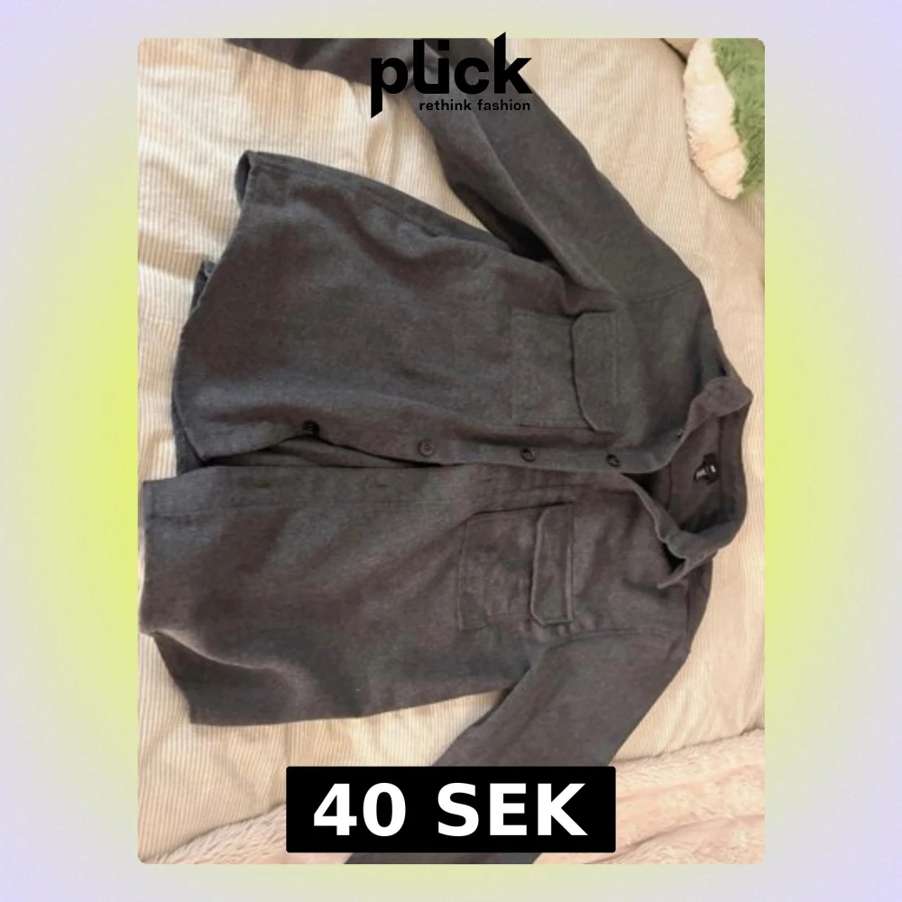 Snygg mörkgrå overshirt från H&M med två stora bröstfickor och knappar framtill. Skjortan har lång ärm och är tillverkad i ett mjukt, ull-liknande material som ger en chill och stilren vibe. Perfekt att slänga över en t-shirt för en cool look.