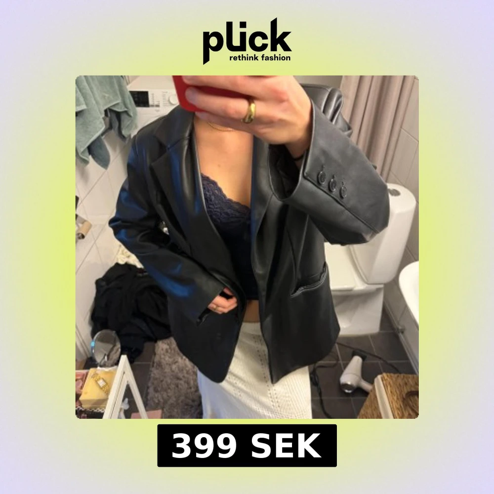 Säljer en svart kavaj i skinnimitation från NA-KD. Kavajen har klassisk krage, knappar vid ärmslut och två fickor framtill. Perfekt för dig som vill ha en stilren och trendig look. Otrolig och oversized🙏 nypris 899:-, helt oanvänd