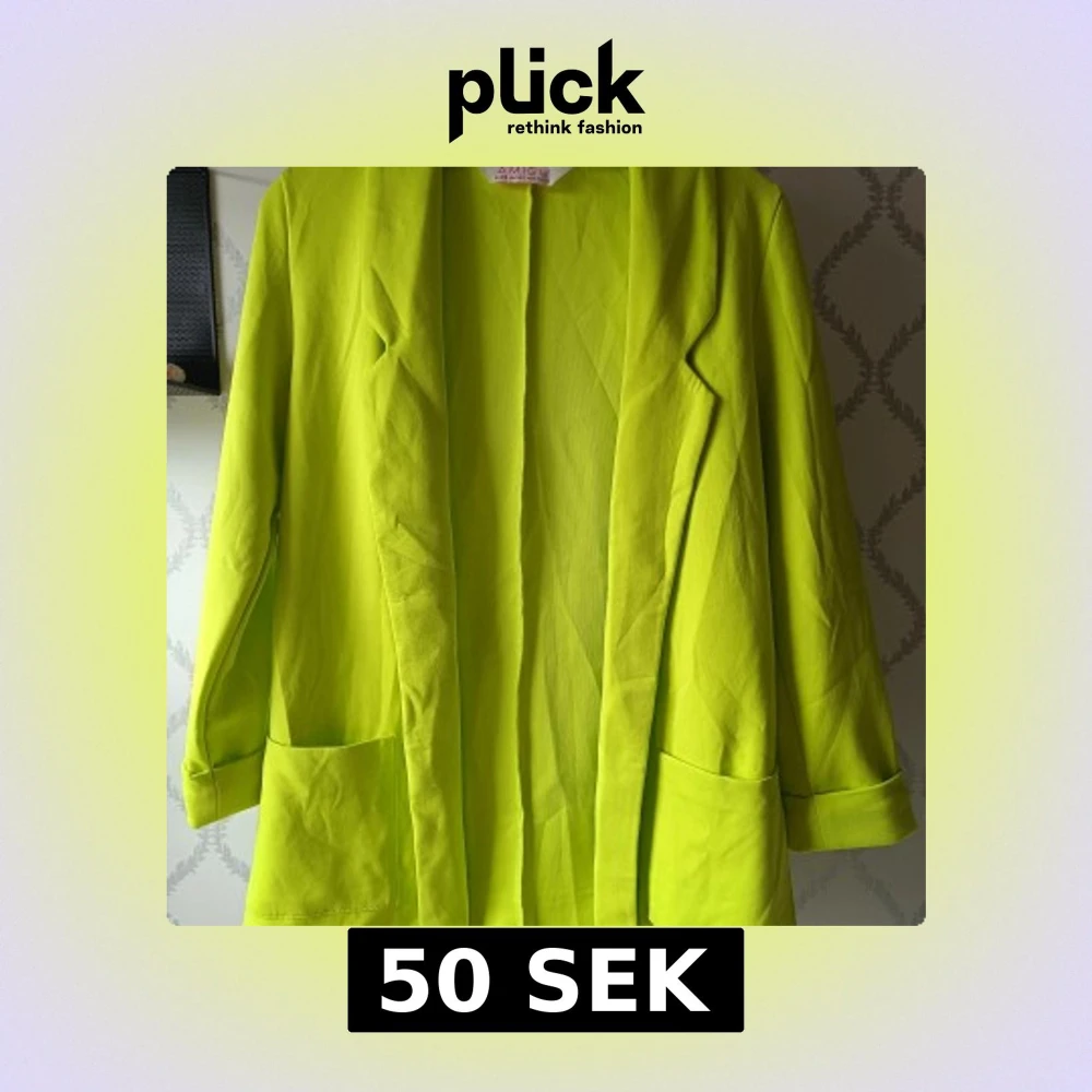 Säljer en neon gul/grön kavaj från Amisu/New Yorkeri istorlek XS/34. Kavajen har långa ärmar, två stora fickor framtill och öppen front utan knäppning. Perfekt för dig som vill sticka ut med en färgstark look. Använd endast 1 gång!!! 50 kronor men priset kan diskuteras