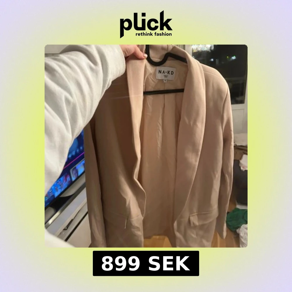 En oversize kavaj i beige. Använd en gång endast. Den har extra tyg vid axlarna. Två fickor i fram.