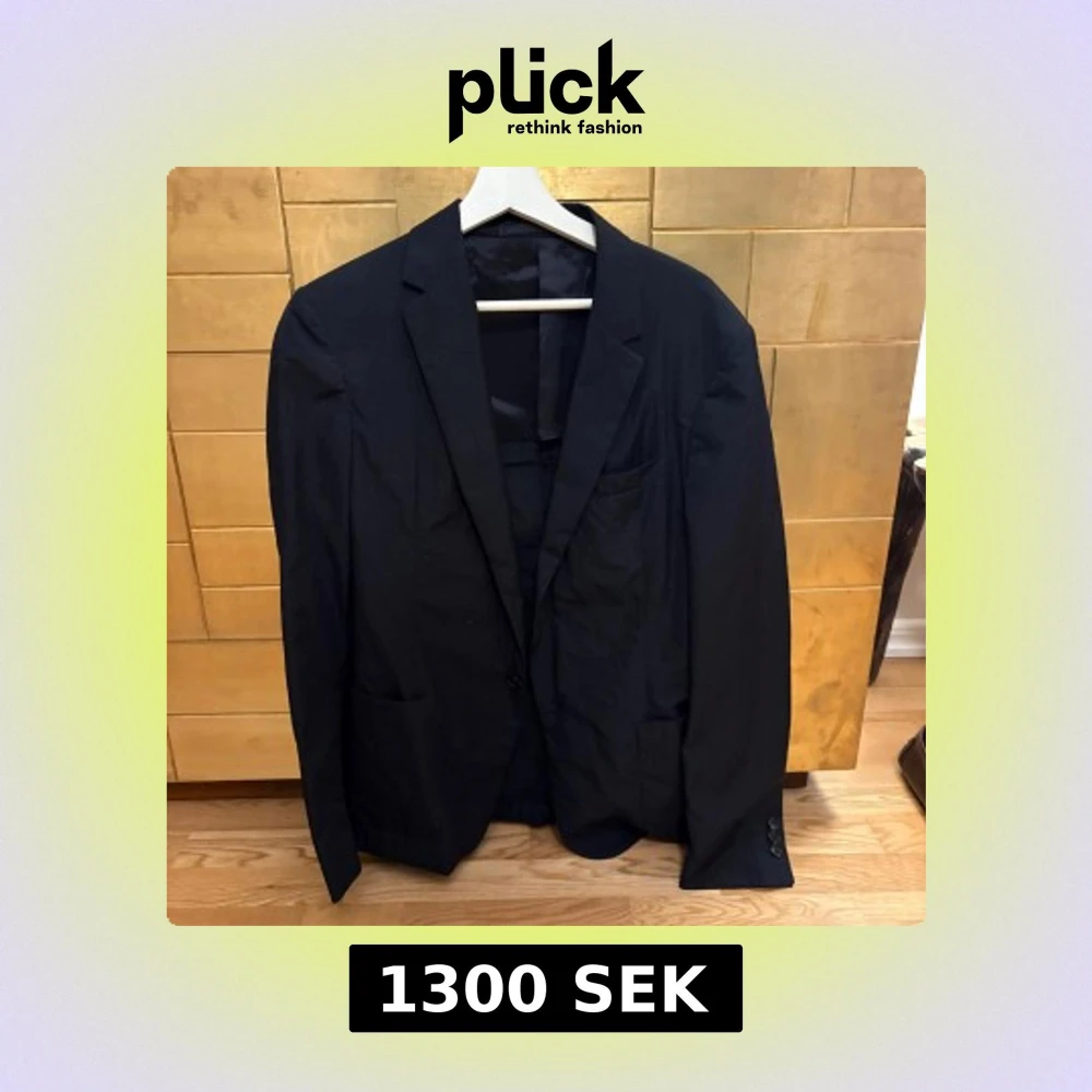 Säljer en svart kavaj från Prada med klassisk passform och enkla knappar vid ärmslutet. Kavajen har slät yta, smala slag och innerficka med tydlig Prada-logga. Perfekt för dig som vill ha en stilren och exklusiv look.
