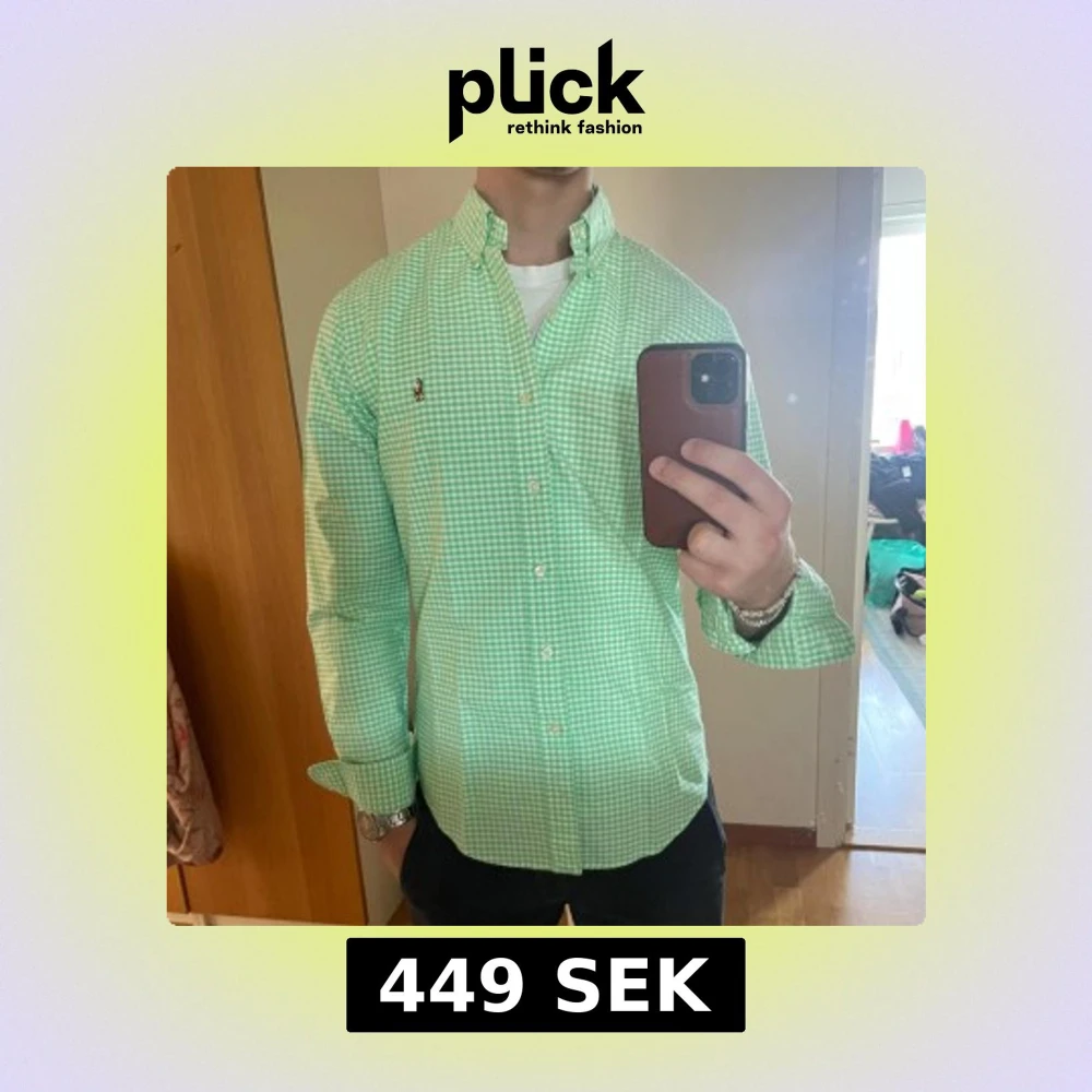 Grön- vit rutig skjorta från Ralph Lauren strl S