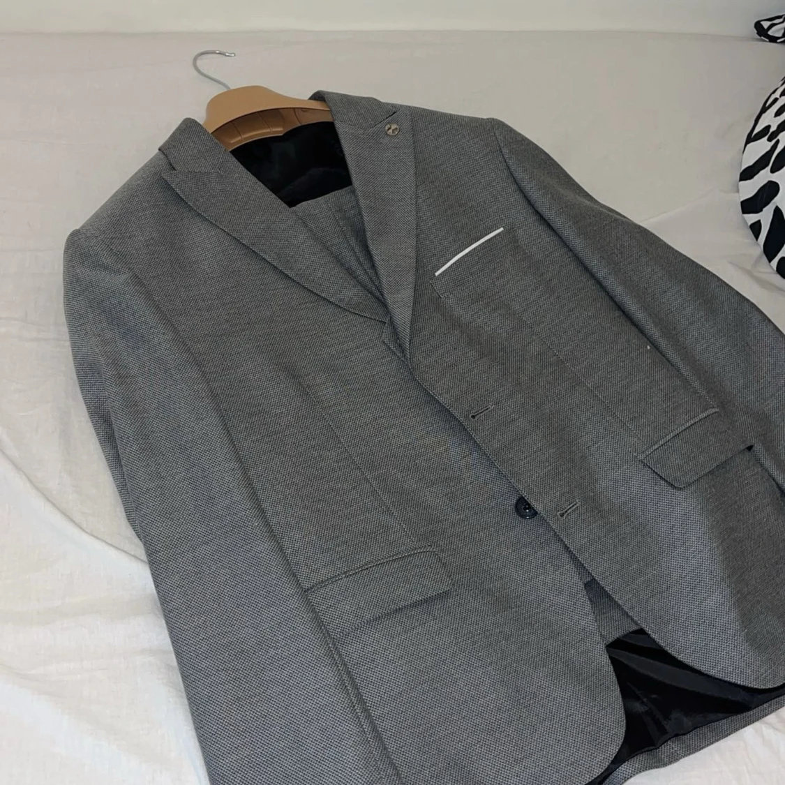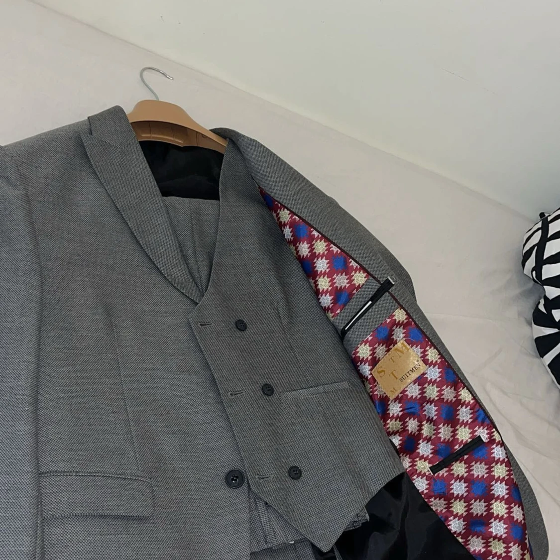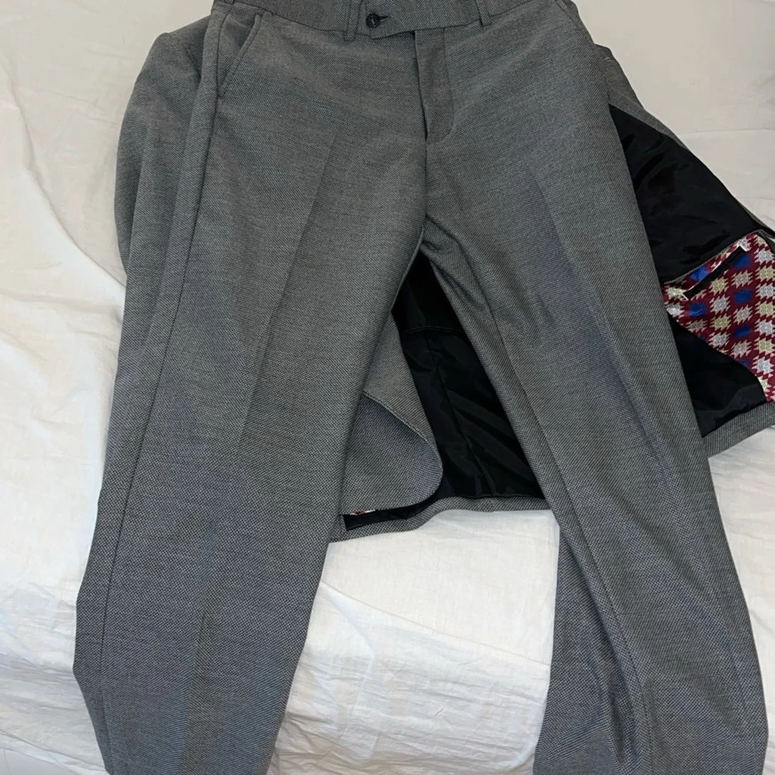 Snygg grå kostym från Stenströms med kavaj, väst och byxor. Kavajen har klassisk passform, smala slag och innerfoder med färgglatt rutigt mönster. Byxorna är raka med pressveck. Perfekt för dig som vill ha en stilren och tidlös look.