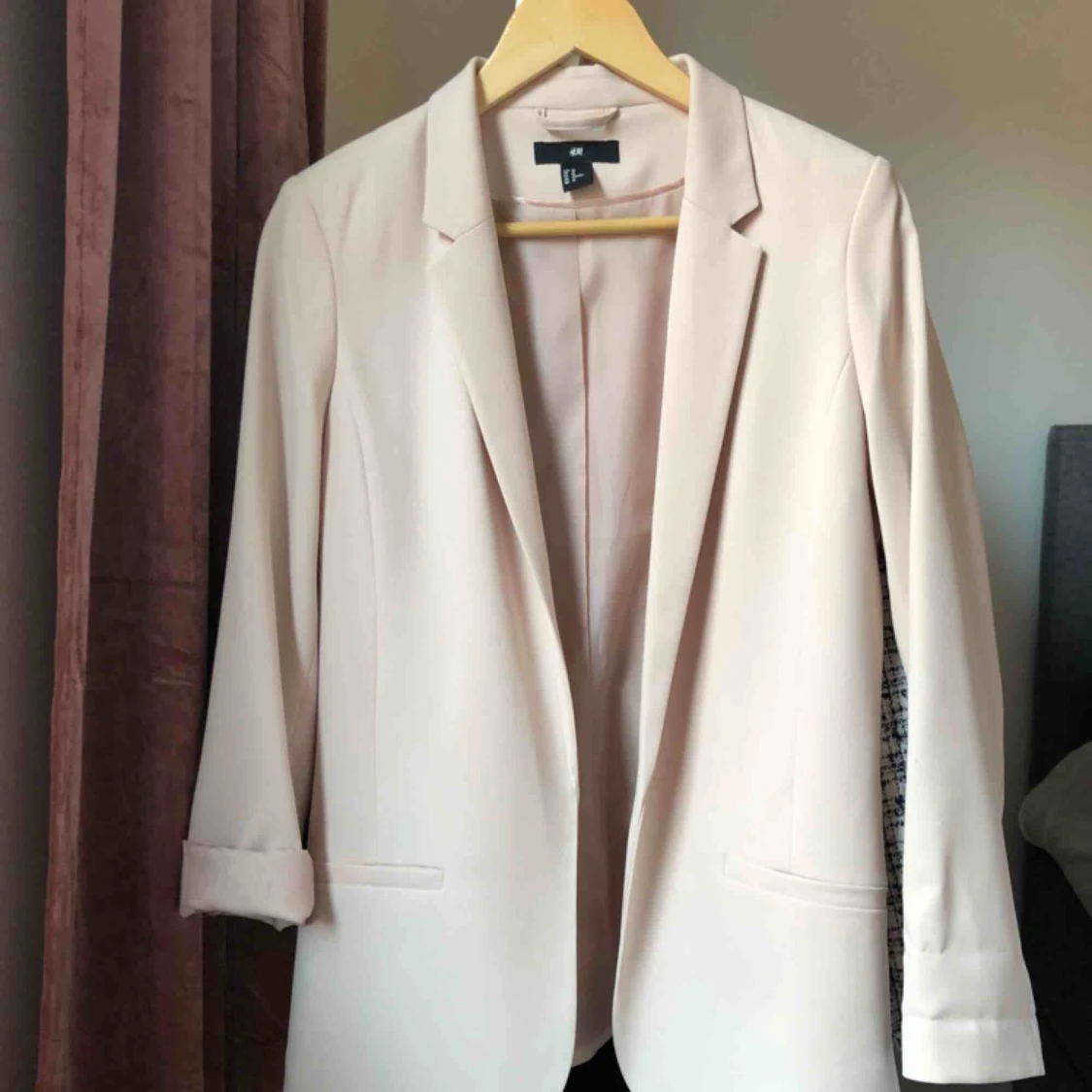 Stilren puderrosa kavaj, längre modell, ingen knäppning. Använd 1 gång