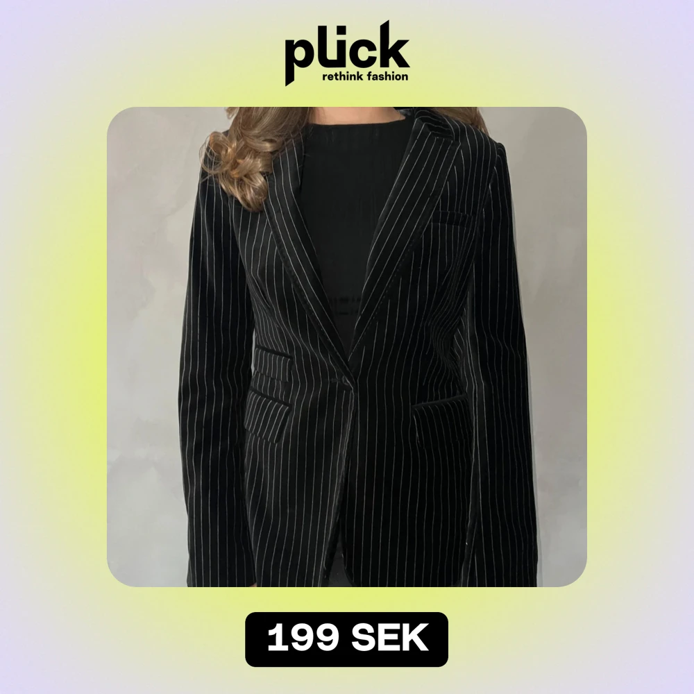Snygg svart kavaj med vita ränder, perfekt för både fest och vardag. Har vanligtvis 36 så denna är liten i modellen
