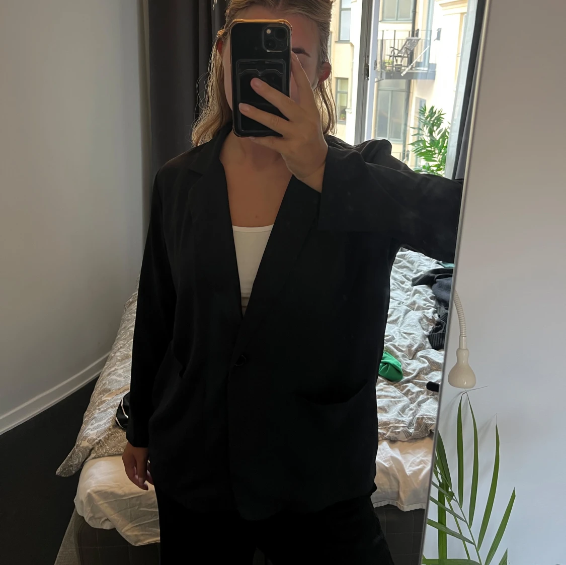 Säljer en tunn svart enkelknäppt kavaj från Bikbok i strl M!