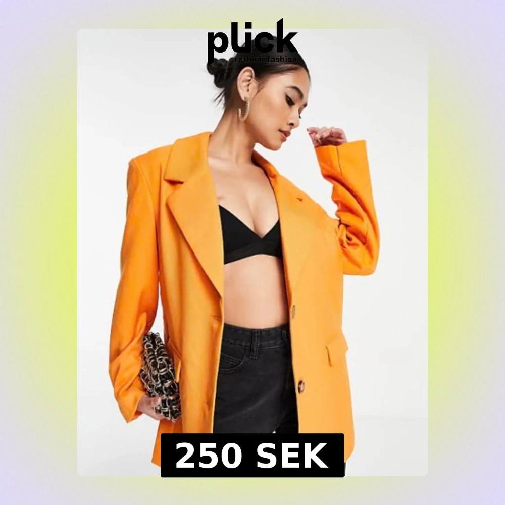 Snygg orange kavaj från Vero Moda med klassisk krage och två knappar framtill. Rak passform och två fickor framtill. Den är lite längre i längden, kan användas som en ”kavaj klänning” också. Det är en storlek S men oversized