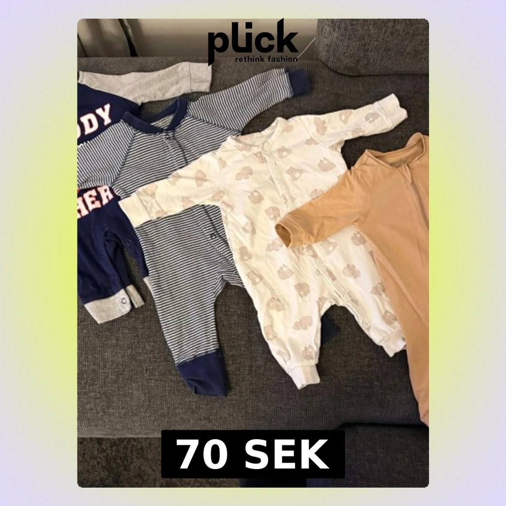 Fyra olika babypyjamas i mjuka material. Använda av ett barn inte alls mycket.