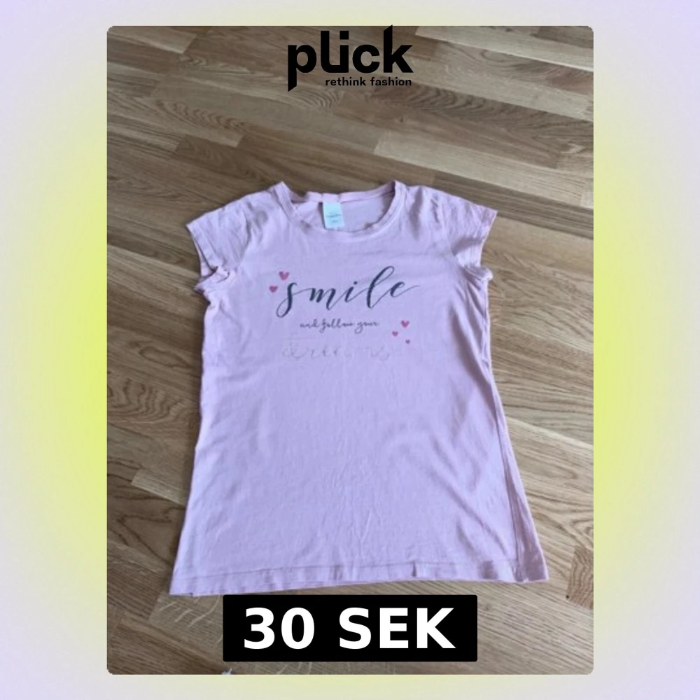 Pyjamastopp med text från Kappahl. Trycket ’Smile and follow your dreams’. Storlek 170 men passar XS. Fint skick