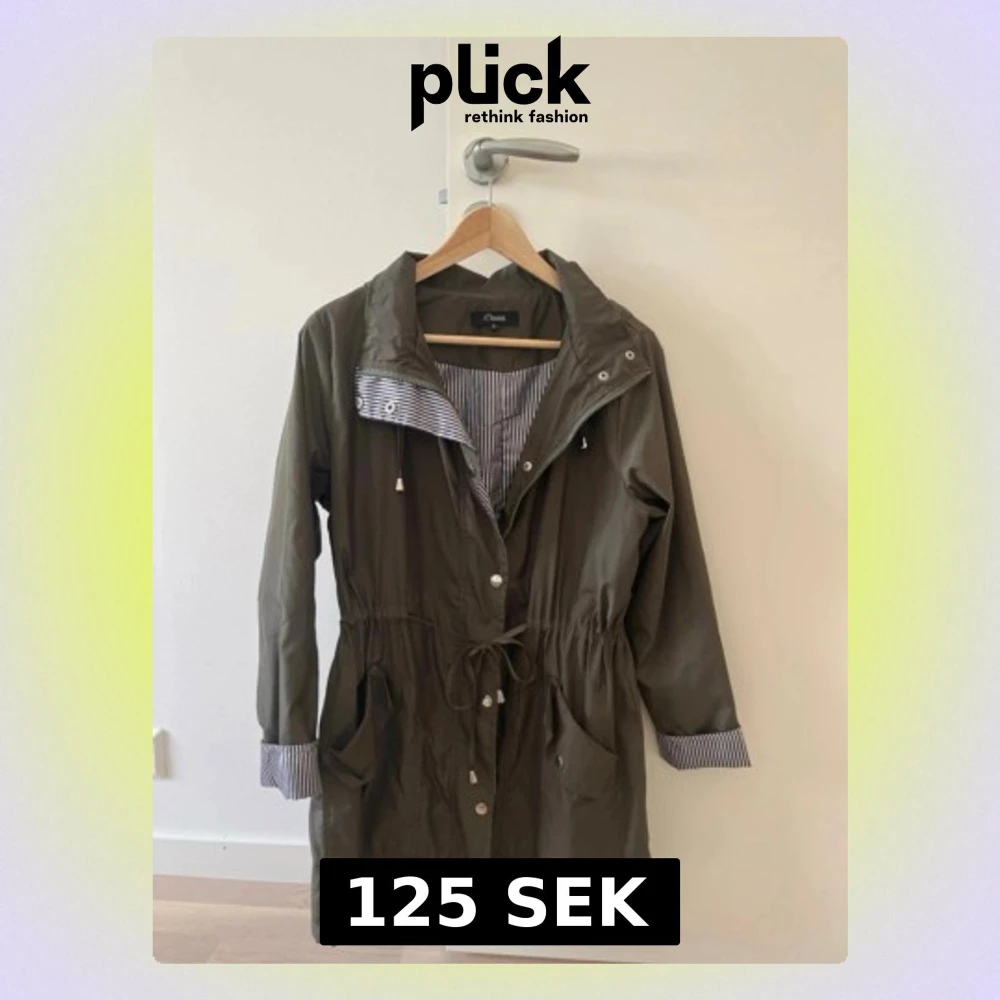 En vindjacka. Jackan tål lite vatten men inte mycket regn. Ganska stor för att vara storlek S. Nyskick.