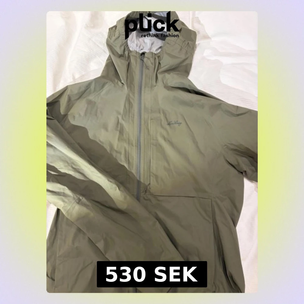Snygg grön regnjacka från Lundhags med hel dragkedja framtill och justerbar huva. Jackan är tillverkad i ett lätt, vattenavvisande material och har diskret logga på bröstet. Perfekt för blöta dagar och outdoor-äventyr.